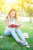 Zdjęcie "Młoda kobieta relaksująca się w parku naturalnym. Urlop i urlop w ogrodzie." może być wykorzystywane do celów osobistych i komercyjnych zgodnie z warunkami zakupionej licencji Royalty-free. Obraz jest dostępny do pobrania w jakości wysokiej rozdzielczości do 5760x3840.