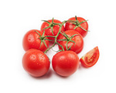 Zestaw dojrzałych czerwonych pomidorów wiśniowych izolowanych na białym tle