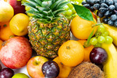 kompozycja z dużą ilością różnych owoców. owoce egzotyczne