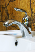 ceramiczna umywalka z uchwyt chrom, z bliska
