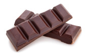 Małe kawałki ciemnej czekolady odizolowane na białym tle ze ścieżką wycinania