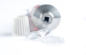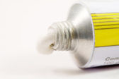 Żółta zielona farba olejna świeżo sfotografowana z tuby dla artystów ze szczotką na czarnym tle