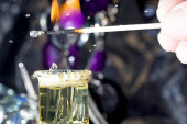 Żółta zielona farba olejna świeżo sfotografowana z tuby dla artystów ze szczotką na czarnym tle