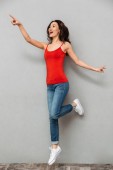 Zdjęcie "Zdjęcie emocjonalne dość piękna młoda kobieta odizolowana na tle czerwonej ściany zrobić gest zwycięzca." może być wykorzystywane do celów osobistych i komercyjnych zgodnie z warunkami zakupionej licencji Royalty-free. Obraz jest dostępny do pobrania w jakości wysokiej rozdzielczości do 5760x3840.