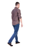 Zdjęcie "Side-tylny widok dorywczy człowiek spacery na białym tle studio" może być wykorzystywane do celów osobistych i komercyjnych zgodnie z warunkami zakupionej licencji Royalty-free. Obraz jest dostępny do pobrania w jakości wysokiej rozdzielczości do 5760x3840.
