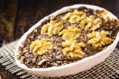 czekoladowe jajko wielkanocne z polewą i nadzieniem cukierkami Brigadeiro. Wielkanocna tradycja z Brazylii, kreatywne i dekoracyjne jajko. Skupienie selektywne.