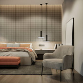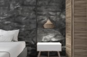 wnętrza nowoczesnej luksusowej sypialni z marmurową ścianą, tło 3d rendering