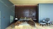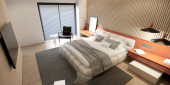 wnętrza nowoczesnej luksusowej sypialni z marmurową ścianą, tło 3d rendering