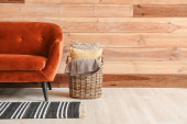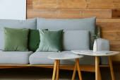 Zdjęcie "Wygodna sofa przy drewnianej ścianie" może być wykorzystywane do celów osobistych i komercyjnych zgodnie z warunkami zakupionej licencji Royalty-free. Obraz jest dostępny do pobrania w jakości wysokiej rozdzielczości do 5760x3840.