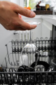 Otwórz zmywarka z czystymi naczyniami w domowej kuchni