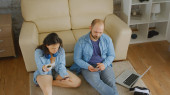 Widok wsteczny emerytowanej pary patrzącej na smartfona z białym, izolowanym ekranem
