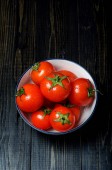 Zdjęcie "Płyta dojrzałych pomidorów na drewnianym tle planszy w studio" może być wykorzystywane do celów osobistych i komercyjnych zgodnie z warunkami zakupionej licencji Royalty-free. Obraz jest dostępny do pobrania w jakości wysokiej rozdzielczości do 5760x3840.