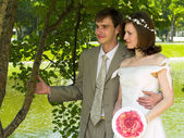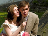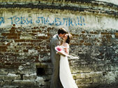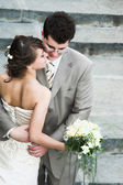 Szczęśliwa młoda para panny młodej i pana młodego, całowanie