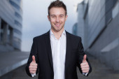 wolności - człowiek biznesu - rozpostartymi ramionami