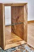 Współczesna pływająca szafka medialna w salonie. Drewniana szafka ścienna