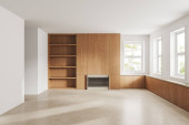 Zdjęcie "Współczesna pływająca szafka medialna w salonie. Drewniana szafka ścienna" może być wykorzystywane do celów osobistych i komercyjnych zgodnie z warunkami zakupionej licencji Royalty-free. Obraz jest dostępny do pobrania w jakości wysokiej rozdzielczości do 5760x3840.