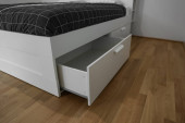 Współczesna pływająca szafka medialna w salonie. Drewniana szafka ścienna z otwartymi szufladami