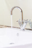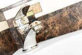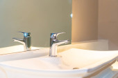 ceramiczna umywalka z uchwyt chrom, z bliska