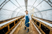 Mężczyzna i kobieta na farmie dla ślimaków rosnących