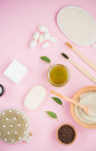 Bawełniane kwiaty z serwetkami do usuwania makijażu i ręcznie robione mydło. Zero odpadów w backgraund mennicy