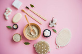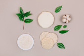 Zdjęcie "Bawełniane kwiaty z serwetkami do usuwania makijażu i ręcznie robione mydło. Zero odpadów w backgraund mennicy" może być wykorzystywane do celów osobistych i komercyjnych zgodnie z warunkami zakupionej licencji Royalty-free. Obraz jest dostępny do pobrania w jakości wysokiej rozdzielczości do 5760x3840.