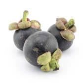 mangostan świeże owoce na białym tle na białym tle - fioletowy owoców tropikalnych