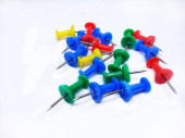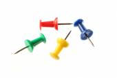 szpilki w różnych kolorach - zbiór różnych pinezki na białym tle