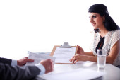 konsultacji lub spotkanie biznesowe - młoda kobieta sprzedaży na ubezpieczenia