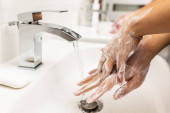 Mycie rąk mydłem w celu zapobiegania koronawirusom, higiena, aby zatrzymać rozprzestrzenianie się koronawirusu.