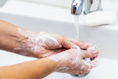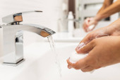 Zapobieganie koronawirusom, higiena, by powstrzymać rozprzestrzenianie się koronawirusów. Odkażanie i powierzchnia kranu.