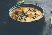 Zdjęcie "Aloo Curry Sabzi wykonane przy użyciu gotowanego ziemniaka z zielonym groszkiem. Serwowane w misce lub karahi, selektywne skupienie" może być wykorzystywane do celów osobistych i komercyjnych zgodnie z warunkami zakupionej licencji Royalty-free. Obraz jest dostępny do pobrania w jakości wysokiej rozdzielczości do 5760x3840.