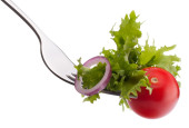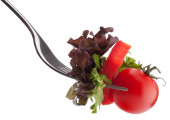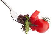 świeże sałatki i pomidor na widelec
