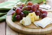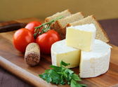 oliwki, ser parmezan, pomidory i bazylia na drewnianym stołem