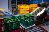 Fabryka, linia próżniowa ogórków, przenośnik. Randki na Litwie, Kedainiai. Wikonda