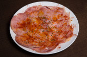 Frytki domowej roboty Salchipapa peruwiański majonez Ketchup i musztarda