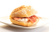 Tace z różnymi montaditos w barze w Madrycie, Hiszpania