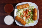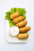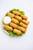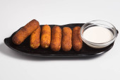 Przystawki latynoamerykańskie o nazwie Tequenos ze smażonej kukurydzy wypełnionej serem