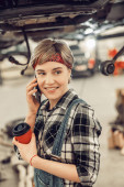 Zdjęcie "Młody mechanik ze smartfonem odwraca wzrok" może być wykorzystywane do celów osobistych i komercyjnych zgodnie z warunkami zakupionej licencji Royalty-free. Obraz jest dostępny do pobrania w jakości wysokiej rozdzielczości do 5760x3840.