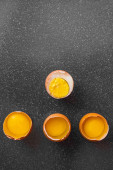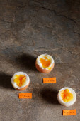 Zdjęcie "Doświadczony, fajny koleś i nowicjusze. Strome jajko obok trzech surowych. Dowódca i podwładni, stażyści, początkujący. Wymiana doświadczeń, klasa podstawowa." może być wykorzystywane do celów osobistych i komercyjnych zgodnie z warunkami zakupionej licencji Royalty-free. Obraz jest dostępny do pobrania w jakości wysokiej rozdzielczości do 5760x3840.