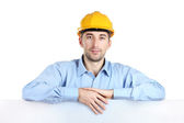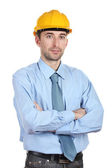 portret młodego pracownika na ciemnym tle