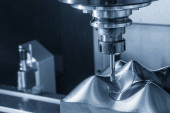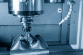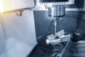Frezarka CNC kończy cięcie części formy wtryskowej za pomocą narzędzi do frezowania kulkowego. Forma i umrzeć procesu produkcyjnego przez centrum obróbcze z węglika spiekanego narzędzi końcowych.