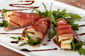 plastry prosciutto pyszne z kaparami, oliwkami i serem