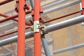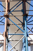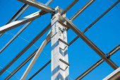 Wytatuowana tkanina na metalowej ramie na tle błękitnego nieba
