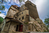 Otręby / Rumunia - 10 maja 2019: Średniowieczny zamek hrabiego Włada Drakuli w otrębach. Zamek Drakuli, Braszów, Siedmiogród. Najczęściej odwiedzany punkt orientacyjny.