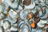 Widok z bliska pysznych jadalnych kasztanów pieczonych na gazowym piecu beczkowym