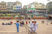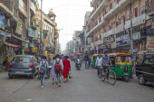 Zdjęcie "New Delhi, Indie - 21 listopada 2019: ruchliwe ulice targowe z kolorowymi domami, budynkami i tłumami ludzi, riksze w pobliżu Jama Masjid w starej części New Delhi, Indie." może być wykorzystywane do celów osobistych i komercyjnych zgodnie z warunkami zakupionej licencji Royalty-free. Obraz jest dostępny do pobrania w jakości wysokiej rozdzielczości do 5760x3840.