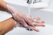 Mycie rąk za pomocą instrukcji medycznych w celu ochrony przed wirusami krok po kroku. Zapobieganie koronawirusom.