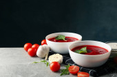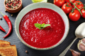 Zdjęcie "Zupa pomidorowa na szarym tle, widok z góry" może być wykorzystywane do celów osobistych i komercyjnych zgodnie z warunkami zakupionej licencji Royalty-free. Obraz jest dostępny do pobrania w jakości wysokiej rozdzielczości do 5760x3840.