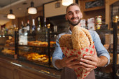 Zdjęcie "Urocza piekarka uśmiechnięta do kamery trzymająca koszyk świeżo upieczonych bochenków chleba. Koncepcja właściciela piekarni" może być wykorzystywane do celów osobistych i komercyjnych zgodnie z warunkami zakupionej licencji Royalty-free. Obraz jest dostępny do pobrania w jakości wysokiej rozdzielczości do 5760x3840.