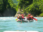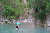Papigo, Grecja 25 czerwca 2019, Turyści biorą lekcje raftingu na słynnej rzece Boidomat w Epirusie